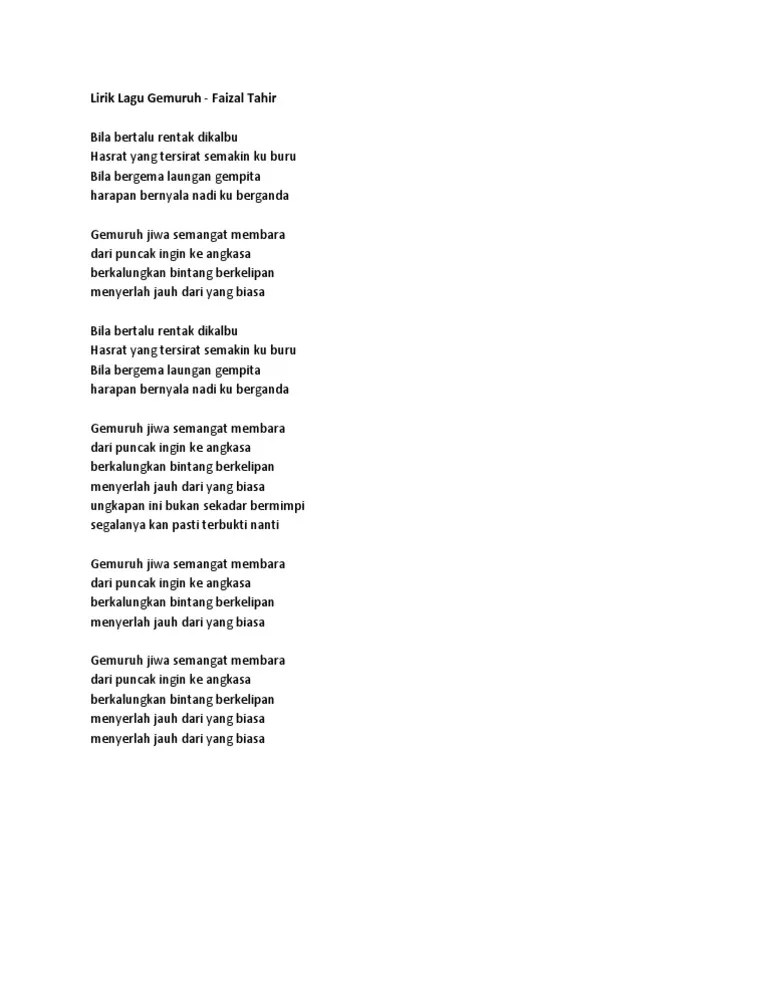 Lirik Lagu Gemuruh Docx Lirik Lagu Gemuruh Faizal Tahir Bila Bertalu Rentak Dikalbu Hasrat Yang Tersirat Semakin Ku Buru Bila Bergema Laungan Course Hero